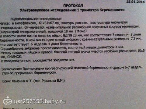 посмотрите пож протокол узи. все ли в норме. уже неделю лежу на сохранении, ложилась для профилактики. прописывали 3 раза в день утрожестан, папаверин. но вместо 3 раз утрик принимала 2 раза, могло ли это повлиять на отслойку. не слишком ли большие размеры? что то я переживаю