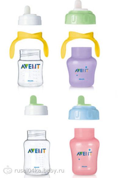 Бутылочки брали 2 маленькие, авентовские, и соски тоже их очень удобные, дырочки там маленькие и малышу удобно что смесь и вода поступают медленно, нам так врач советовала. У всех остальных дырки были больше и малышу было не удобно.