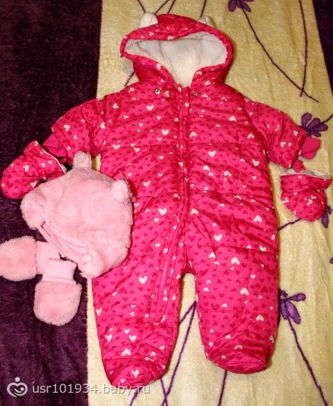Тёплый комбинезон и набор из меховой шапки на флисе с рукавичками на первую зиму: