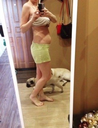 у вас хороший пузик! очень аккуратненький! приятно посмотреть!:) вот мои: первое фото — 18 недель, только намёки. второе фото сегодня 28,2 (простите за нижнее белье))))
