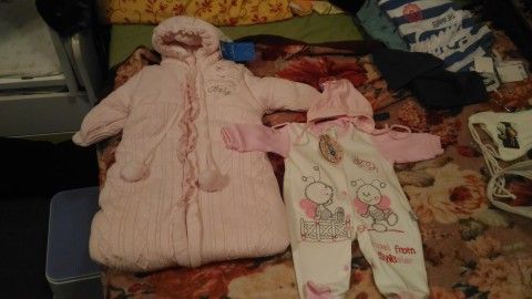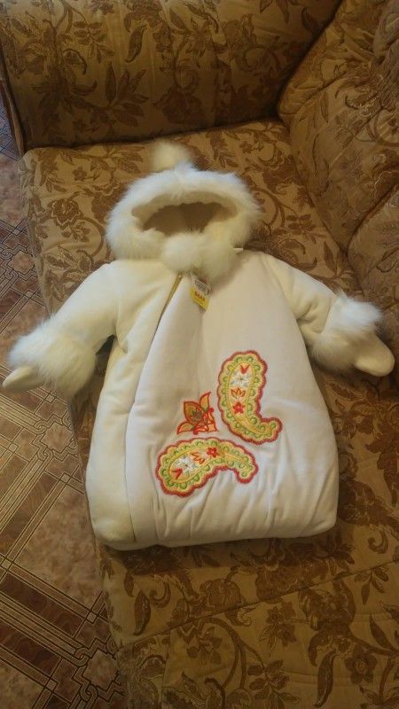 На выписку купила плед теплый (чтобы потом как одеяло использовать) а на зиму уже комбинезон до 74 размера.