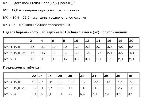 Количество килограммов, которые Вы наберете во время Вашей беременности определяется несколькими факторами. Один из них: Ваша масса тела непосредственно перед наступлением беременности. Замечено, что женщины с низкой массой до беременности набирают в весе больше втечение беременности, и наоборот, с избыточной массой тела – меньше. Если Ваш вес до беременности укладывается в нормальные значения, то скорее всего Ваша прибавка будет составлять середину между 7 и 16 кг, т.е. 11? кг.