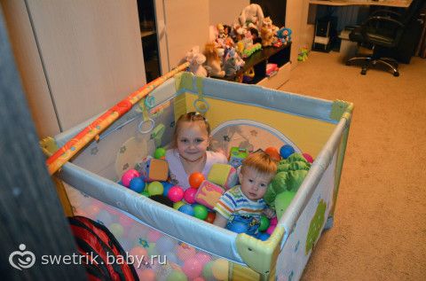 мой сын никогда не сидел в манеже. вообще везде со мной просился. либо в эргорюкзаке таскала, либо в стул для кормления сажала — у нас татамия она с нуля. ну и как пополз на пол его. а манеж был у нас — продала неделю назад. в манеже у нас были мячи 500шт.