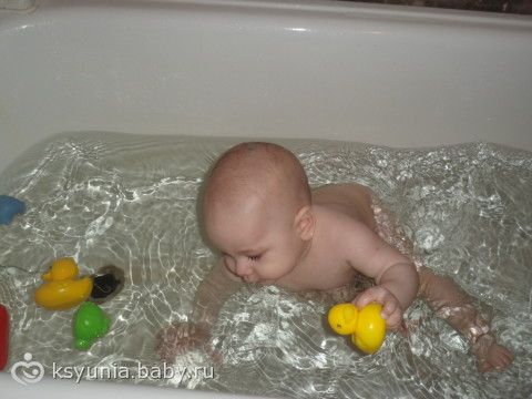Ой и мы так купаемся))) по пол-часа точно плавает. Воды правда много пьет))), зато остальные бояться если личико окунает, прям вынырнет, глазками похлопает, отдышится и дальше играть)))