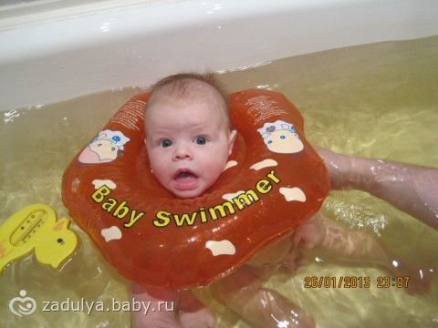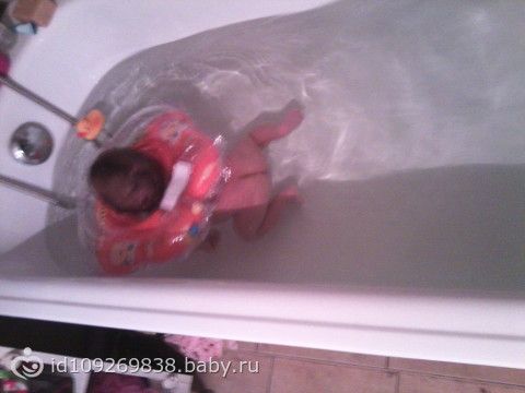 Девочки, подскажите, пожалуйста, кто одевает малышу на шейку круг для плавания в ванне?