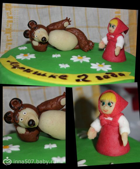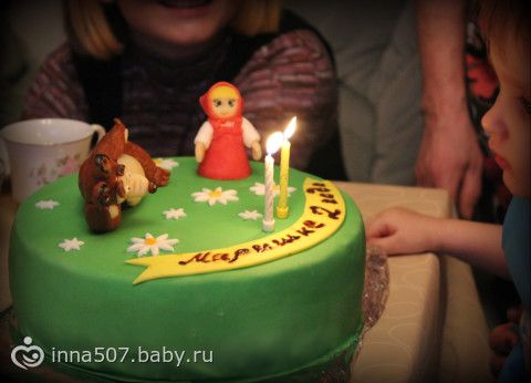 а зеленый с машей и медведем последний ))) я торт покрывала не марципаном, а сахарной мастикой, покупала в интернет-магазине, у вас наверняка тоже можно купить… а для тортика китти сама мастику делала, пробовала 2 разных рецепта… если интересно, могу написать их рецепты, но сразу скажу, что проще купить готовую )