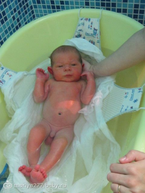Я очень тщательно готовилась к первому купанию. Изучила все важные моменты, чуть ли не по шагам)) Первое и одно из самых важных – собрать всё, что понадобится в процессе купания и после него. Естественно, это непосредственно вода (не выше 37 градусов), все для обработки пупочной раны (ватка, зеленка, ватная палочка и т.д.), кувшинчик с водой для обливания, средства для купания и после (мы использовали пенку «от макушки до пяточек» джонсонс бейби, а потом крем «бережный уход»), полотенце, одежда после купания. Мама рассказывала, что раньше активно рекомендовали использовать марганцовку и детское мыло. Я считаю, что это сильно сушит чувствительную кожу малыша, поэтому не применяла их. Кроме того, после купания обязательно нужно увлажнять кожу. В ином случае у ребёнка могут возникнуть неприятные ощущения, и тогда слез точно не избежать!(