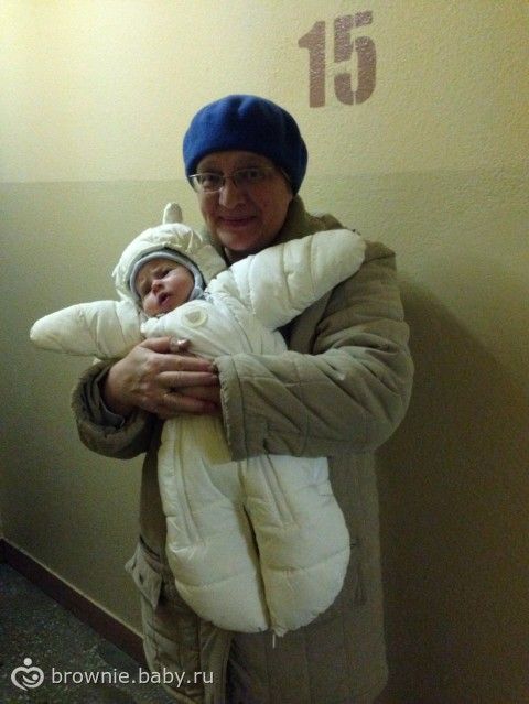 Нам отдали вот такой зимний комбез, он пока что ощутимо свободный, но Мелкий в нем уже не тонет:) простейший h&m, размер 0-2 мес.