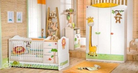 Планирую ремонт в одной из комнат с тем, чтобы переделать ее в детскую, ну и, соответственно, перебираю разные варианты. Нашла вот такой – в стиле «сафари». Что думаете? Мне понравился своей универсальностью (и для мальчика хорошо, и для девочки) и тем, что там много-много всякой всячины в серии. То есть не просто, например, кроватка, а к ней еще и шкафчик подобрать можно, и комодик – вплоть до штор и постельного белья: