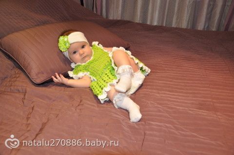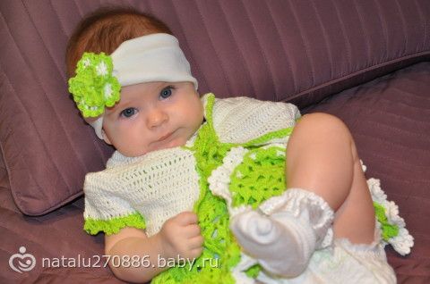 Пусть бабушка свяжет к этому комплекту ажурные белые трусики-шорты с кружевной каймой на ножках и ещё поносите с удовольствием летом!)))Доча у вас-красавица!)))