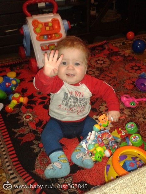 Привет, нам вчера 10 месяцев исполнилось)) На днях получила первую травму от сыночка, синяк теперь на губе((( кружкой стукнул… Говорит только «мама» когда плачет, «га», «да» и на своем лопочет, читаю что у всех уже болтают, переживать маленько начала… Хотя все понимает, делает что прошу. С мягкими игрушками стали обниматься, смешно так… и к подушке подходит и голову кладет и улыбается довольный)))