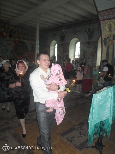сегодня было таинство крещения Георгия Александровича( то есть нашего Егорика). Так-то он у нас капризный мальчишка и любит визжать(а не плакать). а тут на удивление всем вел себя изумительно! Ну просто умничка, когда захочет им быть. Так как я у Егорки музыкальная, то и сынишка у нас музыкальный. Поэтому он с удовольствием слушал напевы иерея Евгения.