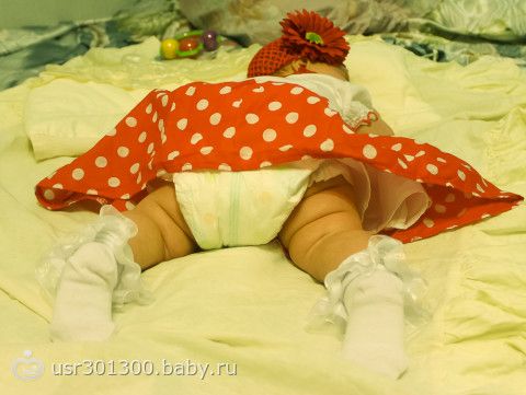 и пару слов про наш режим. Ложимся спать в 11 вечера. спим до 8 (с 2-3кормлениями). в течение дня спим 4 раза. но бывают дни с капризульками, и мне очень тяжело. А бывает мое золотце ведет себя отлично, и мама успевает даже по дому что-нибудь сделать и даже пошить. в этом месяце мы попробовали фруктовое пюре (с3,5), доче очень понравилось. со стулом все ок. едим каждый день по пару столовых ложек. а так только гв форэва и водичка.