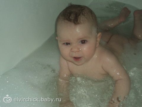 Мы как раз до 6-ти месяцев с кругом плавали, а потом с ним стало просто неудобно, т.к. дочка уже доставала ножками дна ванны, отталкивалась и прям переворачивалась(( На тот момент сама она еще не сидела, поэтому купалась в ванной на животике, вот фото: