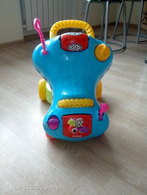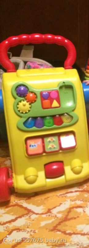 сейчас пользуемся такой, как на фото, дочке нравится. купили в 9,5 мес, дней 10 интересовалась исключительно передней панелью с игрушками, а сейчас сама подходит берет за ручку и рассекает с ней, довольная как слоник))