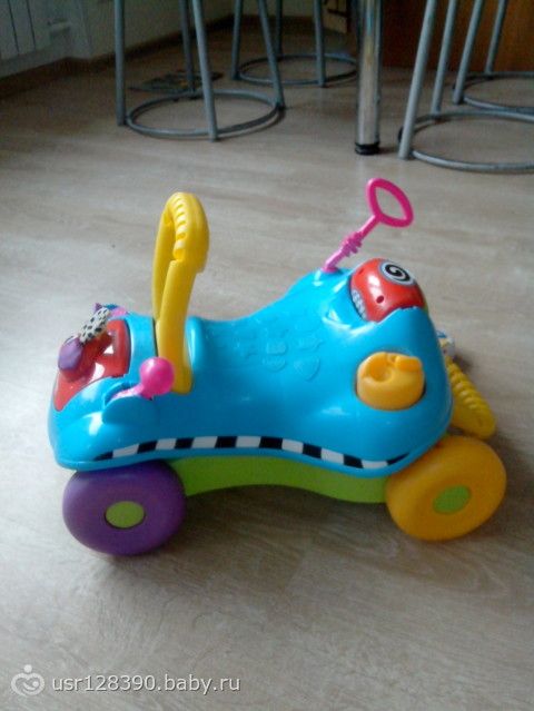 У нас вот такая (Kiddieland). Ничего не проскальзывает и не переворачивается) А под сиденьем можно устраивать «тайник» и «домик», и складывать туда всякие мелкие вещи и прятать игрушки:))
