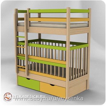 Девочки, решила озадачиться проблемой кроватки для двоих детей. В нашей спальне 3*3 метра нет места для двух кроваток для малышей. Одному будет 1 год и 10 месяцев, когда родится второй, и выпроваживать его из нашей спальни не хочется, к себе на кровать новорожденного тоже не хочется… много историй страшных слышала, что детеныша можно задавить(в себе я уверена, а вот муж спит как слон))) Выгонять мужа тоже не вариант)) Вот и думаю заказать двухъярусную. Сначала малыша на второй, а как вертеться начнет местами поменяем. Может у кого была такая проблема, как решили? Или у кого-нибудь есть фото кроватки? Заранее спасибо за ответ.