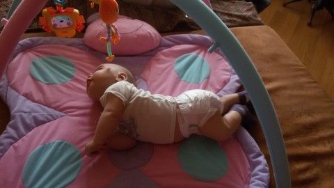 Через 4 дня, нам 4 месяца, а мы ни в какую не хотим или не можем на живот перевернуться. Главное годову прям переворачивает, утыкается носом в матрас, а туловищем не может))) Я ей конечно помогаю. Еще мы во всю пытаемся сесть(пресс качаем): постоянно и на прогулке, в коляке и на коврике развивающимся, в качельках эл-ых, даже когда купаемся. Если лежим на боку тоже пытаемся, качать пресс, хорошо боковые мышцы работают))). Так что ее походу больше заботит как бы сесть, а то что мама переживает, что она не переворачивается ей все равно?И главное, капризничает во всю, т.к. не получается)Сегодня вот были у ортопеда он сказал все хорошо, когда проверял позвоночник, то посадил её вот счастью не было приделв)))