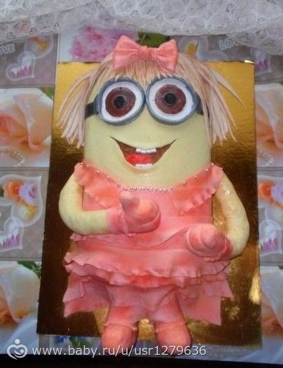 Нам захотелось тематику миньенов ) Потом в руки вставили свечку «1» и маленькие шарики )Малышке без разницы, нам прикольно ))))