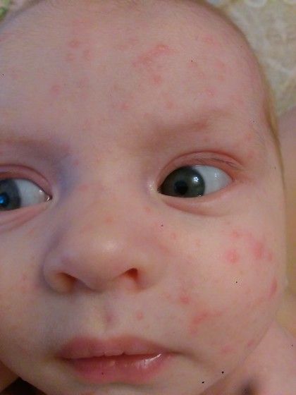 Аллергия? Аллергия имеет локализацию преимущественно на щеках. А наши прыщики и на веках, и на ушной раковине. Кроме того, я не меняла рацион с роддома. Ничего откровенно аллергичного не ем.