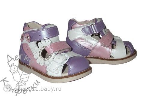 Сандалии ортопедические, жесткий высокий задник (6 см), упругий средних размеров супинатор, скошенный каблук Томаса, ровная гибкая подошва «mata-mat», в ее основе материал «Technogel» разработка немецкой фирмы Baer AG.
