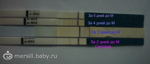 — За 5 дней до М был сделан первый тестик, был призрак. Фото прилагаются внизу.