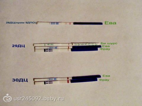 показал только после того как эви несколько дней показывал уже розовую четкую полоску… так что ты зря так быстро сдалась.