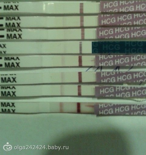 В первый деь задержки была очень бледная полоска, да и честно говоря яркой полоски и на 5 день не было, всего делала 3 теста. По крови хгч соответствовал сроку.