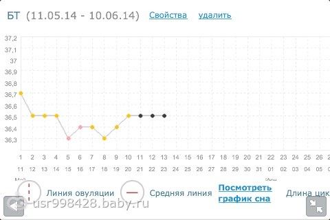 Вот как раз сейчас сличаю! Только в прошлый цикл без тестов О увидела на графике на 15 ДЦ, и цикл у меня 27 дней всего. А в этом цикле ещё и тесты на О замачиваю. Начала на 13 ДЦ — слабенькая, почти невидимая, 14 ДЦ с утра — так же, вечером однако — уже хорошо видать стало. Может в этом цикле овуля «отодвинется» ещё дальше? БТ пока на 36.8. Не «западает» перед О (в первый цикл был сильный скачок, на 0.4 от средней линии).