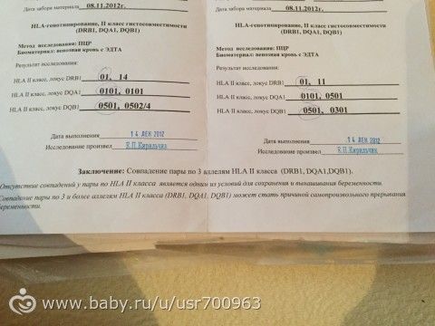 у него видимо у родителей были совпадения по hla, вот у него и попали одинаковые, сходите обязательно, в диагностическом мне ни слова об этом не сказали, да и потом я поняла большая часть гинекологов об этом ничего не знает, воскресенская нам надежду дала, а то мне уже донорство предлагали или с мужем развестись )))), мы сами думали уже о суррогатном материнстве от отчаяния.