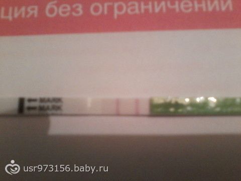 Сегодня первый день попробовала тест на овуляцию. Показало две полоски, тестовая ярче чем контрольная, четкий контур, но тоньше чем контрольная.