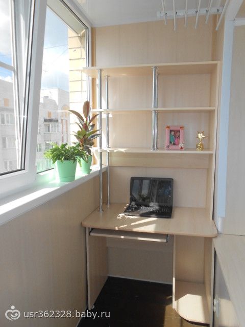 Лоджия у нас почти 6 м длиной… И вот решили мы использовать эту площадь,.т.к. квартира у нас однокомнатная! Сделали мебель на заказ! С одной стороны поставили компьютерный стол (позже приобретем компьютер)
