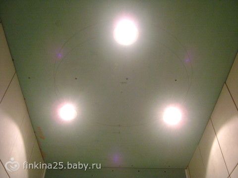 Потолок — светодиодная подсветка, тоже зеленое яблоко, здесь на фото светло изумрудная получилась. Муж делал сам, а мы с сыночком контролировали процесс. Ну я иногда еще работала в качестве «подай-принеси»! Потолок тоже сами — муж с тестем гипсокартонили все это дело, а потом мы с мужем красили, потом муж делал освещение и вентиляцию ( вентилятор с датчиком влажности)