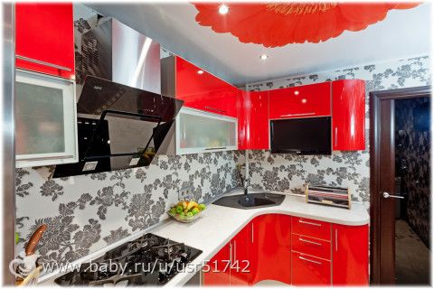 в нете так много разных красных кухонь. прям глаза разбегаются))) мне очень нравится сочетание красной кухни и черной техники и плитки)