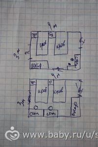 А теперь немного поясню, что же я хочу на самом деле))) Цветовую гамму хочу как на первой картинке. От входной двери сразу будет идти угловой шкаф с зеркалом, и по бокам два одинаковых узких пенала с полками. Далее хочу двухъярусную кровать с выдвижными ящиками снизу. Вариант №4 конечно не вписывается в такой интерьер. Но понравилось, что и старшая не упадет и младшая не сбежит))) Бортики отличные! На рисунке 2 нравится стол, что как раз для двоих. У каждой свое место. Вот дилемма стоит в том, что многие говорят, что лучше две отдельных кровати… А если две кровати поставить, то места будет совсем мало((( И хочется, чтоб надолго мебель эта была. А старшая-то растет… Как потом с двухъярусной кроватью — нормально ей будет лазить туда??? Да и заправлять неудобно((( Младшая пока ещё с нами живет. Может только через год переедет к сестре. Но мы будем делать все летом, так как у старшей нет стола, где делать уроки. Ну и скину план детской комнаты, может кто-то что-то подскажет.