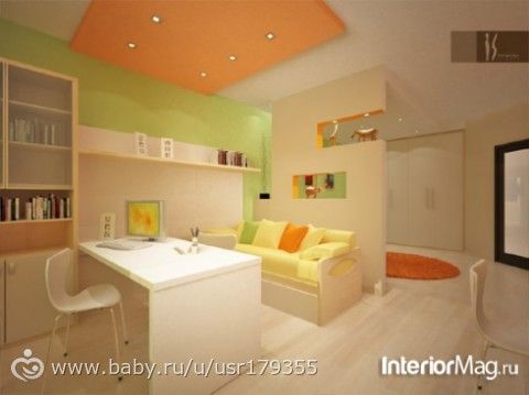 у нас один пока сынишка, мы брали мебель сканд-мебель угловой шкаф и два пенала цвет дуб белый +рамка венге смотрится прикольно, диван дальше, напротив дивана стол той же расцветки над ним полка а по бокам стеллажи полузакрытые, обои теплый салатовый цвет, комната 10 кв.метров