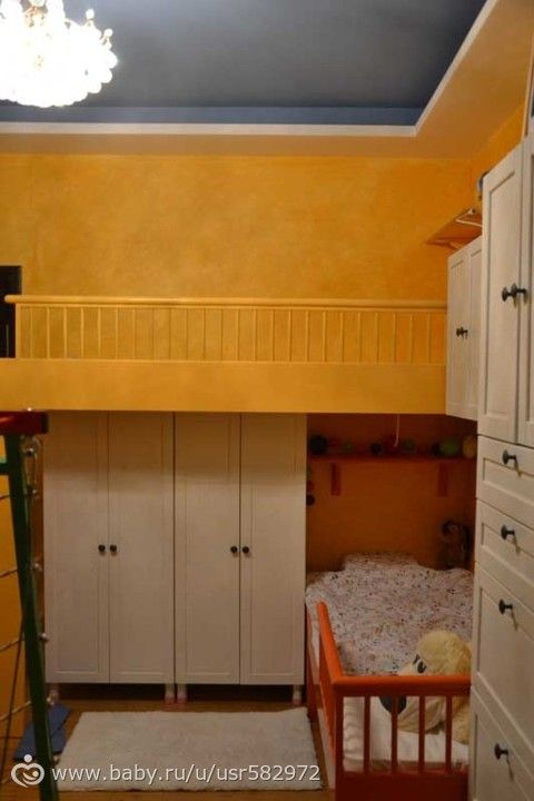 Я открытых полок вообще нигде не хочу. Вот кухню сделали полностью закрытой и до потолка. В зале стенка в виде прямоугольника — все закрыто. Детской это тоже касается))) Я ещё подумывала над кроватями из шкафа. Чтобы на день убирались и делай что хочешь — места много. Это если отдельные кровати…