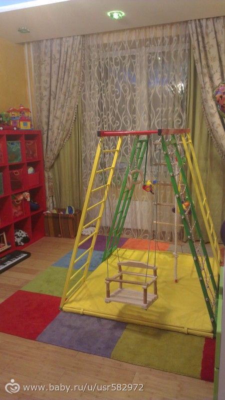 Сейчас у нас стоит диван и кресло-кровать в комнате по одной стене. По второй стене — стенка. Там вещи старшей все. А в углу шкаф с игрушками и 2 шт. больших корзины, опять же с игрушками… И у окна маленький столик и стульчик.