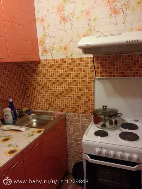 У нас виниловые обои с цветочками=)Обожаю свою оранжевую кухню=)
