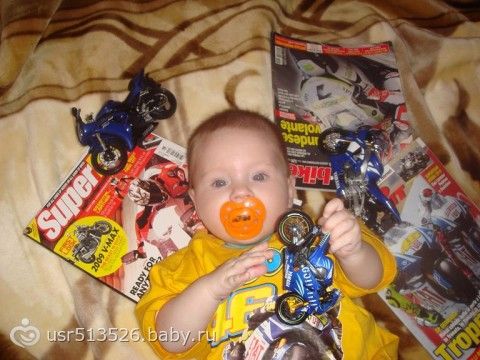 Так как речь все же идет о спорте, хочу вас предупредить, в начале стимулирование вашего ребенка к занятиям, это только ваша задача. Для опытного педагога нет проблем, чтобы вызвать интерес своих учеников к предмету. Но, к сожалению, не все родители прирожденные учителя. Поэтому воспользуемся не большой хитростью. Окружите своего ребенка мотоспортом. Игрушечные мотоциклы (лучше вообще обойтись без других игрушек)) ), картинки и раскраски, совместное посещение мотосоревнований (про беруши не забывайте), ТВ программы и даже настольные игры про МотоГП (в Испании есть и такое). Поверьте, это работает. На одной рекламе известной фирмы, выпускающей аудио аппаратуру, изображен маленький мальчик подвязанный слюнявчиком. В руке у него игрушечный мотоцикл, он возит его по большой тарелке с картофельным пюре, на которой горошком выложена трасса, снизу подпись: Рики Кармайкл — 3 года… Поэтому, если бабушки с дедушками захотят подарить деревянную лошадь, пусть вместо нее интерьер детской будет украшать деревянный мотоцикл-качалка.