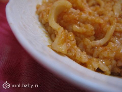 И еще маленький нюанс -периодически помешивать, есть момент, когда кальмары с рисом оседают, а вся жидкость вверху и думаешь, что все ок, а может пригореть.