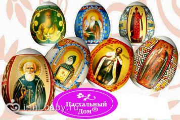 Термопленка, термоэтикетка на 7 пасхальных яиц «Иконы Божией Матери»Думаете это предел фантазий? Нет, полет воображения коммерсантов не знает границ. Ассортимент наклеек широчайший — от невинных гжели, хохломы, жостово, до «православных» серий «Ангелы», «Иконы Божией Матери», «Библейская», «Православные святые», «Христианские иконы», «Монастыри» и и т.д. Термопленка, термоэтикетка на 7 пасхальных яиц «Православные Святые»