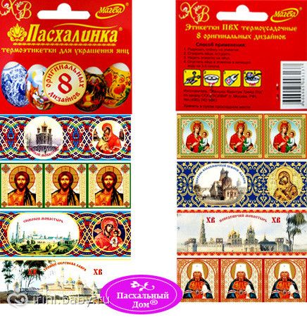 Термопленка, термоэтикетка на 7 пасхальных яиц «Христианские иконы»Казалось бы, зачем такое обилие «святости» и «православия» в наклейках. Ведь мы же не иконостас собираем, а всего лишь хотим яйца святить! Ответ находим тут же, на сайте магазина, на странице с рекламой серии наклеек под названием «Святая Русь»: «Пасхальные дни мы снова и снова обращаем взор к истокам православия. Здесь наше духовное начало, источник веры и вдохновения.