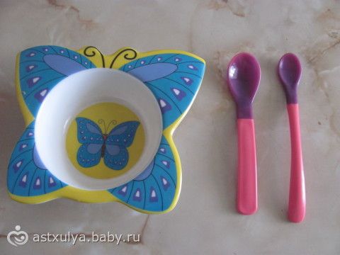 а вот для вас есть разница как и в чем есть?? я вот не могу есть например из кастрюли, быстро быстро, я должна все поставить на стол, в красивой посуде, рядом обезательно сок и т.д… и дочке купила такую класивую тарелочку)))вот и она, мне прям умиляет когда ее кпрмлю, и наши ложечки, которые при высокой температуре меняют цвет, как бы говоря маме что ни-ни нельзя, а когда температура приходит в норму, опять цвет меняет)) а вы как с этим?? тоже капризные??? какие у вас шедевры посуды?? киньте свои… может что-то новенькое для себя приглежу,,,, вот и посуда дочи… свою лень выкладывать))у нас все банально в черно белой гамме))
