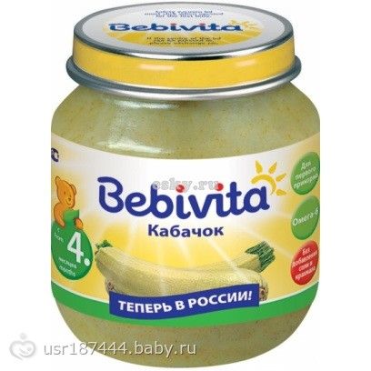 9. Bebivita Состав: вода, кабачок, мука рисовая грубого помола, масло кукурузное.