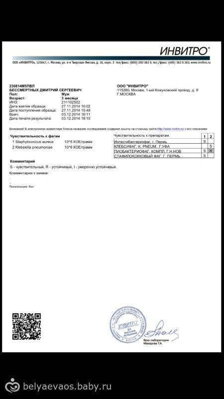 Я в ужасе((( У меня появились подозрения, что что-то не так, когда в очередной раз малыш выдал какашки в виде поноса со слизью, вес набираем не так активно как раньше, так еще со стулом проблемы( в поликлинике сказали, что какахи так себе, но мало ли что съела. Но я так это не оставила. На след утро сдала какахи на дисбактериоз с чувствительностью к фагам в Инвитро. Пришел результат… золотистый стафилакокк и клебсиела. Если про стафилакокк я еще что-то слышала, но второе вообще не понятно. Начиталась в инете. Хорошо лежу:( Дурно, страшно(( не понятно(( куда же теперь бежать?((