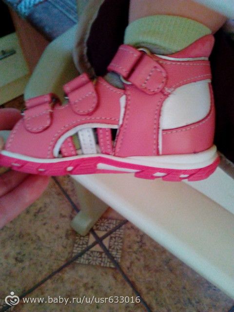 У нас первая обувь сандалики профилактические(ортопед сказала носить) Жесткий задник стелька для профилактики плоскостопия. Обувь на липучках очень удобно одевать.