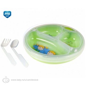 Были на гв, была ложка и пластиковые две тарелочки, одна глубокая, другая обычная с липучкой, чтобы к столу приклеивалась, они недорогие, и пластиковые стакан, пил позже с трубочками. Всеми этими приборами и сейчас пользуемся, так хоть упадет что не разобъется, ложку давно выкинули, конечно же. Еще ниблер был