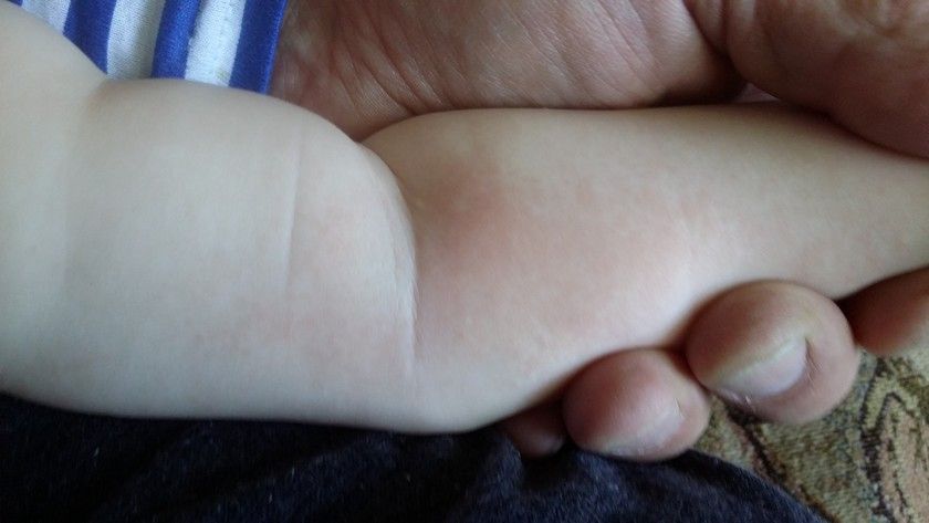 Она не перегревалась, не потела? На ручке похоже на укус комара или мошки
