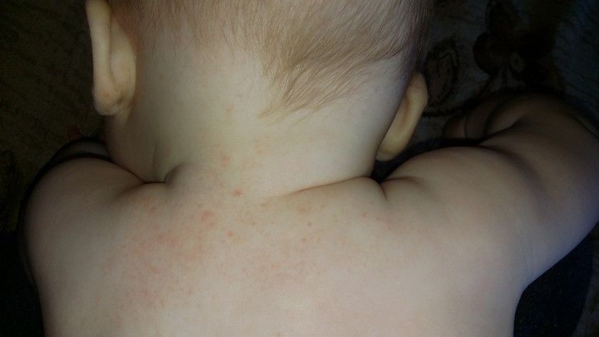 Девочки, у сынули появилась сыпь на теле, не знаю, что делать. Мы сейчас в деревне, врача на дом не вызовешь, скорая тоже не вариант, т к кроме сыпи ничего нет. В больницу везти — подхватишь что-нибудь… Сыпь на шейке и спереди и сзади, на одной ручке повыше кисти и на боку. Такая как розовые мелкие-мелкие точки, сливающиеся в большое пятно, на шейке точки крупнее. Фото не получается нормальное сделать, но вроде бы видно. Что это — аллергия, инфекция? Что делать — подождать или все же в больницу? Кроме сыпи пока ничего не беспокоит.